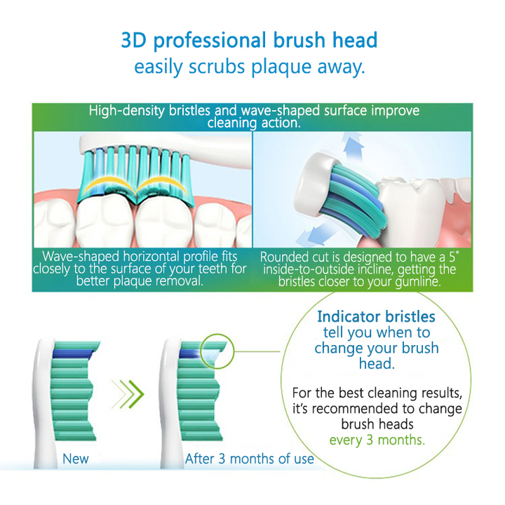 - Đầu chải được thiết kế viền lông độc đáo, kết hợp với tốc độ và cường độ vượt trội, bàn chải điện Sonicare giúp tối ưu hóa việc làm sạch và chăm sóc răng miệng Có thể điều chỉnh theo nhiều chế độ khác nhau: