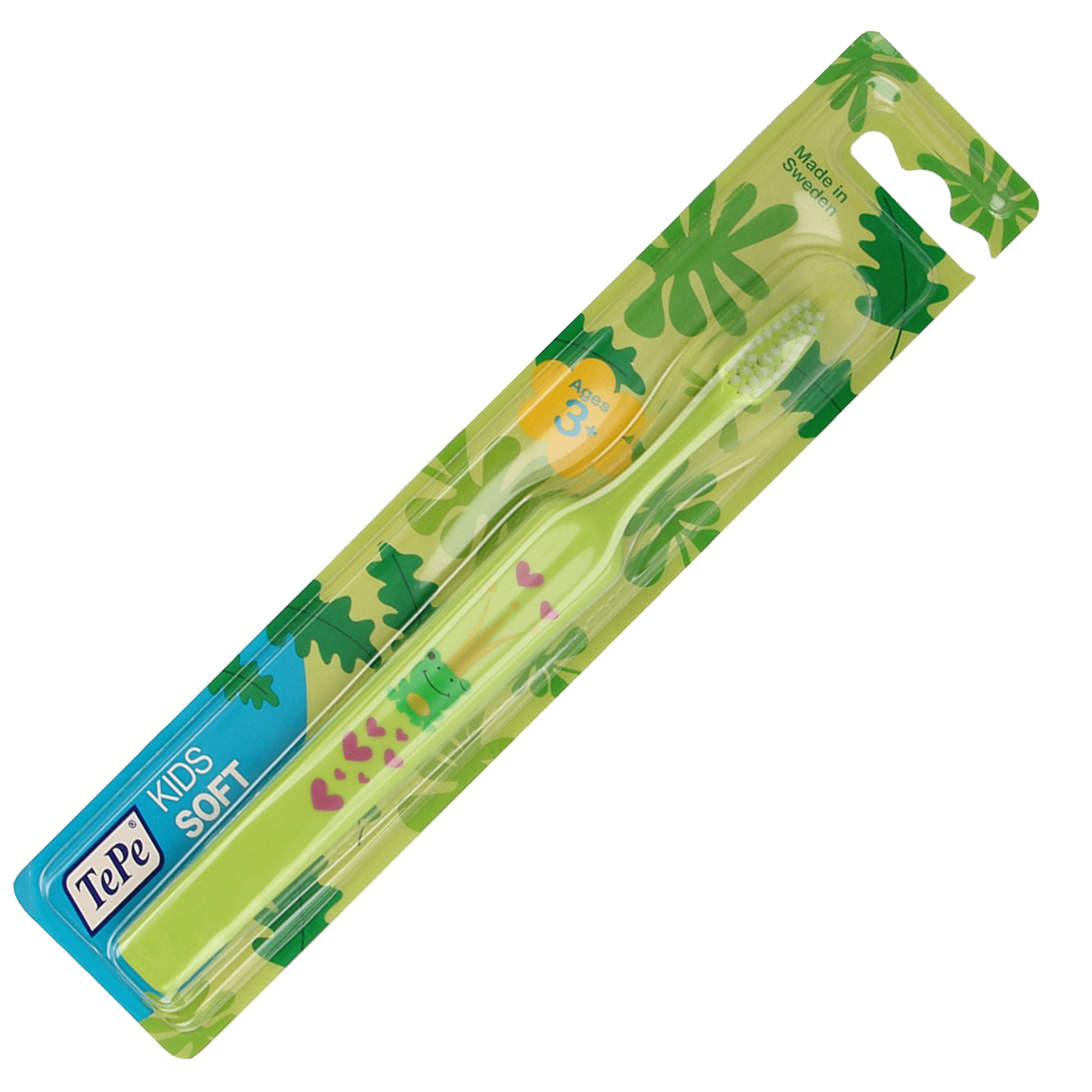 Bàn chải đánh răng siêu mềm nhiều màu cho trẻ từ 4 Tuổi Tepe Kid Extra Soft TePe Kid là dòng sản phẩm bàn chải đánh răng Select Compact loại siêu mềm, có thiết kế bắt mắt với những hình vẽ hoạt hình vui nhộn, thu hút các bé, được nha sĩ khuyến khích và khuyên dùng cho trẻ em từ 4 tuổi trở lên Thông tin chi tiết của bàn chải đánh răng cho trẻ từ 4 Tuổi Tepe Kid Extra Soft Model: Tepe Kid Extra Soft Tên thương hiệu: Tepe Xuất xứ: Thuỵ Điển Công dụng của bàn chải đánh răng cho trẻ từ 4 Tuổi Tepe Kid Extra Soft Bàn chải đánh răng siêu mềm Tepe Kid Extra Soft được thiết kế với đầu thon nhỏ phù hợp với khuôn miệng của trẻ và lông bàn chải mềm mại thích hợp với răng sữa của trẻ.