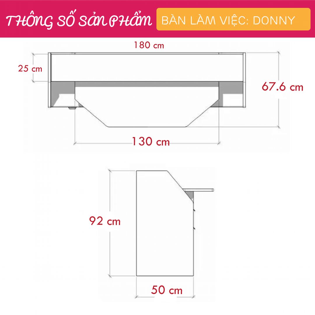 - Kích thước: Dài 180cm x Rộng 67.6cm x Cao 92cm
