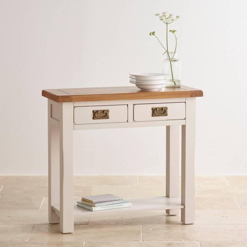 Bàn console 2 ngăn kéo được làm từ gỗ sồi trắng Mỹ nhập khẩu, với thiết kế thanh mảnh, kiểu cách và đầy sáng tạo, rất lý tưởng đặt ở khu vực đầu hành lang và tiền sảnh. Thiết kế có 2 ngăn kéo rộng rãi đảm bảo cho mọi đồ vật trong nhà trở nên ngăn nắp và gọn gàng. Kệ thấp là nơi trưng bày các vật trang trí như bình hoa, các đồ lưu niệm.... Các sản phẩm thuộc bộ sưu tập Kemble mang đặc trưng bởi màu sơn trắng xám và các chi tiết góc, vát cạnh mềm mại, kết hợp tay cầm cổ điển tạo cảm giác nhẹ nhàng và thanh lịch cho ngôi nhà.
