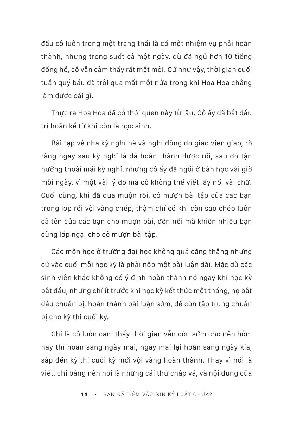 Bạn có từng cảm thấy dường như m.ình sở hữu thời gian vô biên nhưng lại không đủ thời gian cho mọi việc, luôn bận rộn và mệt mỏi nhưng hiếm khi biết rõ m.ình đang làm gì, cứ thế mông lung tiến về tương lai? Bạn đã từng thử thách bản thân hoàn thành công việc sát hạn chót để rồi tự hào rằng "áp lực tạo ra kim cương", m.ình đã lầy lội thế rồi mà vẫn xong việc, m.ình phải giỏi lắm thì mới gấp rút được như thế? Nếu gặp triệu chứng trên, hẳn là bạn đã mắc phải căn bệnh trì hoãn rồi.