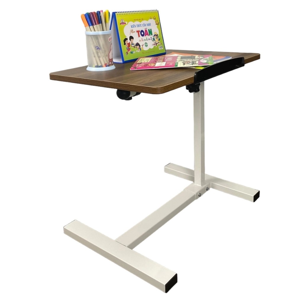 Đặc biệt, chân bàn có kiểu dáng dẹt, thanh mảnh và được trang bị bánh xe linh hoạt cho phép người dùng dễ dàng kéo chiếc bàn sát vào giường, ghế sofa khi muốn làm việc, đọc sách hoặc biến nó thành một chiếc khay đựng đồ ăn di động và nhanh chóng gấp gọn sau khi dùng không gây chiếm nhiều diện tích sử dụng.