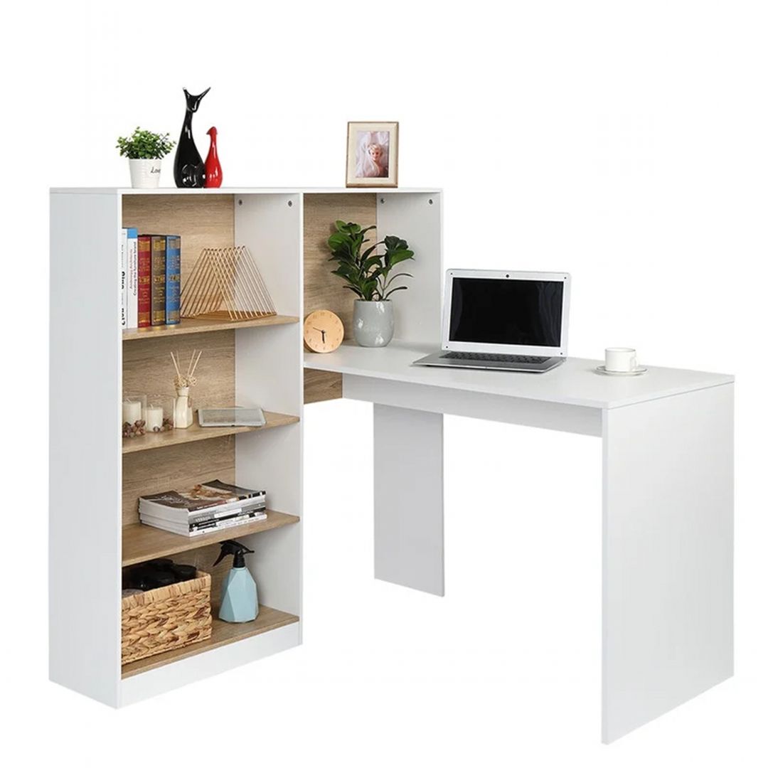 - Tên sản phẩm: Bàn làm việc chữ L thông minh kèm kệ sách thương hiệu IGA - Màu sắc: Trắng - Vân gỗ óc chó - Chất liệu: Gỗ mdf phủ melamin chống xước