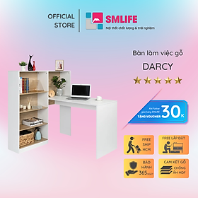 Mua tại TiktokMang đậm phong cách nội thất đơn giản, bàn làm việc gỗ SMLIFE Darcy là một sự bổ sung hoàn hảo cho phòng làm việc, phòng đọc sách của bạn. Bàn làm việc Darcy được thiết kế với nhiều tầng kệ và ngăn kéo mang đến nhiều không gian giúp bạn tổ chức sách vở và các vật dụng trang trí thoải mái. Sản phẩm là một giải pháp phù hợp cho những văn phòng hoặc căn hộ diện tích nhỏ. Sử dụng vật liệu ván ép công nghiệp MDF chống ẩm phủ Melamine cao cấp giúp bàn làm việc, bàn học gỗ SMLIFE có độ bền cao, chống trầy và chống ẩm rất tốt. Bạn có thể tự lắp đặt sản phẩm dễ dàng với các phụ kiện và hướng dẫn đi kèm. ĐẶC ĐIỂM SẢN PHẨM: