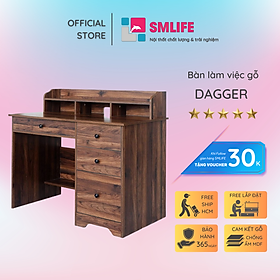 Mua tại TiktokMang đậm phong cách nội thất đơn giản, bàn làm việc gỗ SMLIFE Dagger là một sự bổ sung hoàn hảo cho phòng làm việc, phòng đọc sách của bạn. Bàn làm việc Dagger được thiết kế với nhiều tầng kệ và ngăn kéo mang đến nhiều không gian giúp bạn tổ chức sách vở và các vật dụng trang trí thoải mái. Sản phẩm là một giải pháp phù hợp cho những văn phòng hoặc căn hộ diện tích nhỏ. Sử dụng vật liệu ván ép công nghiệp MDF chống ẩm phủ Melamine cao cấp giúp bàn làm việc, bàn học gỗ SMLIFE có độ bền cao, chống trầy và chống ẩm rất tốt. Bạn có thể tự lắp đặt sản phẩm dễ dàng với các phụ kiện và hướng dẫn đi kèm. ĐẶC ĐIỂM SẢN PHẨM: