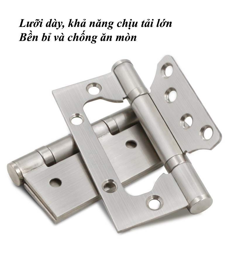 - Bản lề lá được làm từ chất liệu kim loại mạ Inox SUS304 dày dặn, không han gỉ