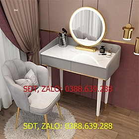 - Bàn phấn có kèm gương tròn gắn LED tiện lợi, phong cách độc đáo