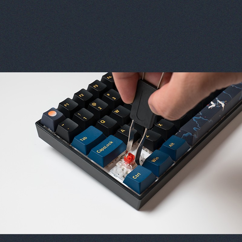 - Phụ kiện: Bộ keycap Hạc tiên – Mây tím – Trăng sáng, 4 Switch, Cáp Type-C, Gắp Switch & Gắp Keycap, túi đựng