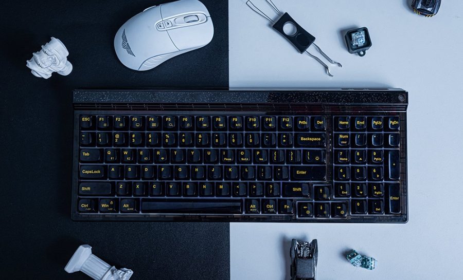 Tên sản phẩm : Ngôi sao đen GM980 Misty rain Số lượng phím: 100 Kích thước: 391*161*39mm Foam tiêu âm : Silicon 2 lớp Keycap: PC , ASA- Clear profile LED: 16.8 triệu mầu, 19 hiệu