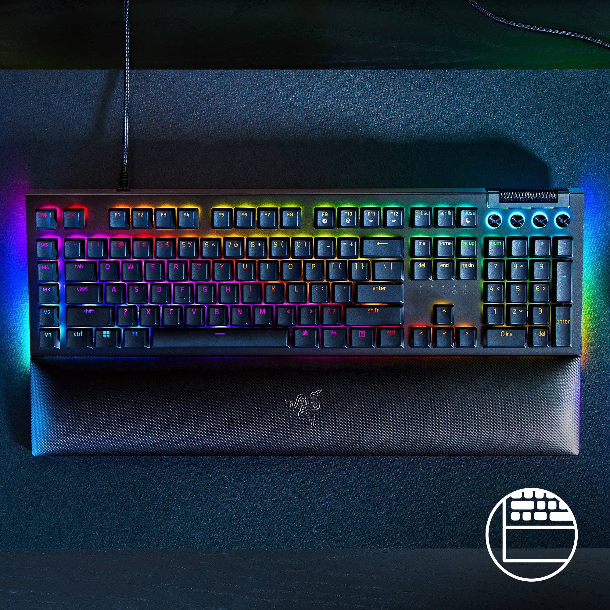 Các Switch cơ Razer (Clicky hoặc Linear) cho khả năng thực thi chính xác và nhanh Ánh sáng trên mỗi phím và underglow 2 bên được trang bị hệ thống chiếu sáng Razer Chroma RGB