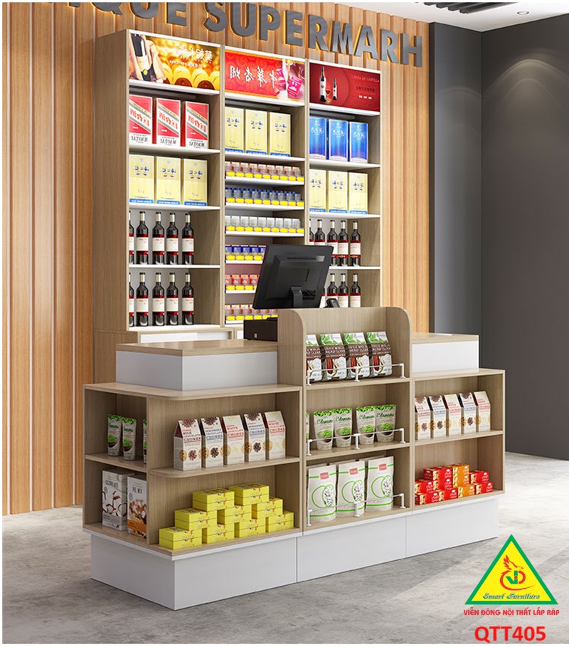 6. Tối ưu hóa quy trình giao dịch: Kết hợp bàn tính tiền và quầy trưng bày giúp rút ngắn quãng đường di chuyển từ việc chọn sản phẩm đến thanh toán, từ đó làm giảm thời gian xếp hàng và tăng tốc độ giao dịch.