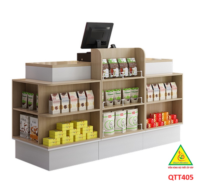 Bàn tính tiền kềm quầy trưng bày sản phẩm là một giải pháp thiết kế thông minh trong việc tối ưu hóa không gian và thuận tiện cho quá trình thanh toán và trưng bày sản phẩm trong cửa hàng hoặc siêu thị. Bàn tính tiền được tích hợp ngay gần khu vực quầy trưng bày, cho phép nhân viên thu ngân và khách hàng thực hiện các giao dịch mua sắm một cách tiện lợi và nhanh chóng.