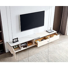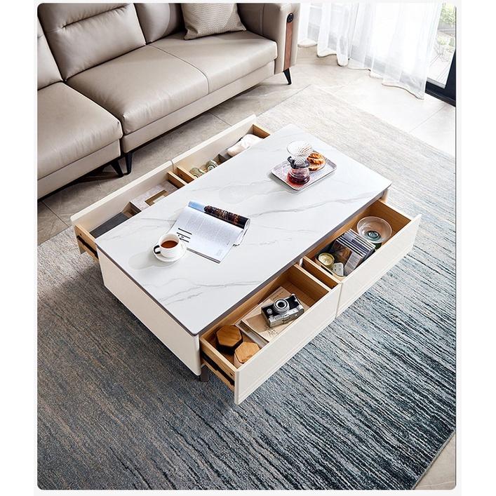 ✨Bàn trà vân đá gỗ công nghiệp hiện đại phòng khách chung cư kết hợp tủ tivi có thể kéo ra thu vào LH058