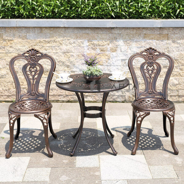Bàn tròn nhôm đúc TE2025-65A kết hợp cùng 2 ghế ngoài trời bất kỳ tạo nên bộ bàn ghế ban công đẹp.