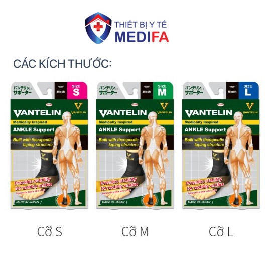 Mua tại TiktokBăng bảo vệ cổ chân Vantelin được làm từ chất liệu vải dệt Lycra co giãn mang lại cảm giác thoải mái khi mang, bao xung quanh cổ chân tránh lệch khớp cổ chân khi đi đứng, tham gia thể thao vô cùng hiệu quả. Đai bảo vệ cổ chân Vantelin được MEDIFA nhập khẩu chính hãng từ Nhật Bản. Khi băng đai bảo vệ cổ chân Vantelin thì bạn có thể mang giày cũ bình thường, không tăng kích thước size giày, dễ chịu khi đeo đai hàng ngày và có thể giặt. ĐẶC ĐIỂM NỔI BẬT: