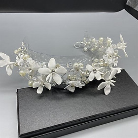 Trâm cài tóc cô dâu thiết kế ngọc trai và hoa 5 canh mềm mại, nữ tính. Tôn lên vẻ đẹp cho mái tóc xinh. Thích hợp trang điểm, make up cô dâu, trang điểm