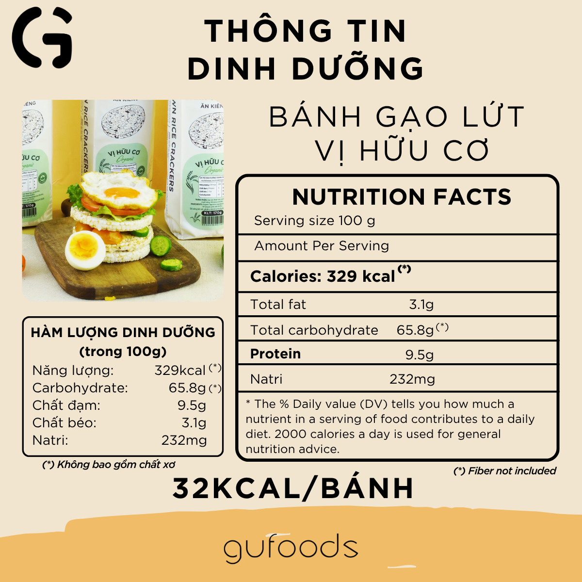 ✨Bánh gạo lứt Hữu cơ GUfoods - Thành phần gạo lứt organic, Không đường, Không chiên dầu, Lành mạnh, Phù hợp Eat clean, Ăn vặt healthy, Thực dưỡng, Tập gym, Thuần chay