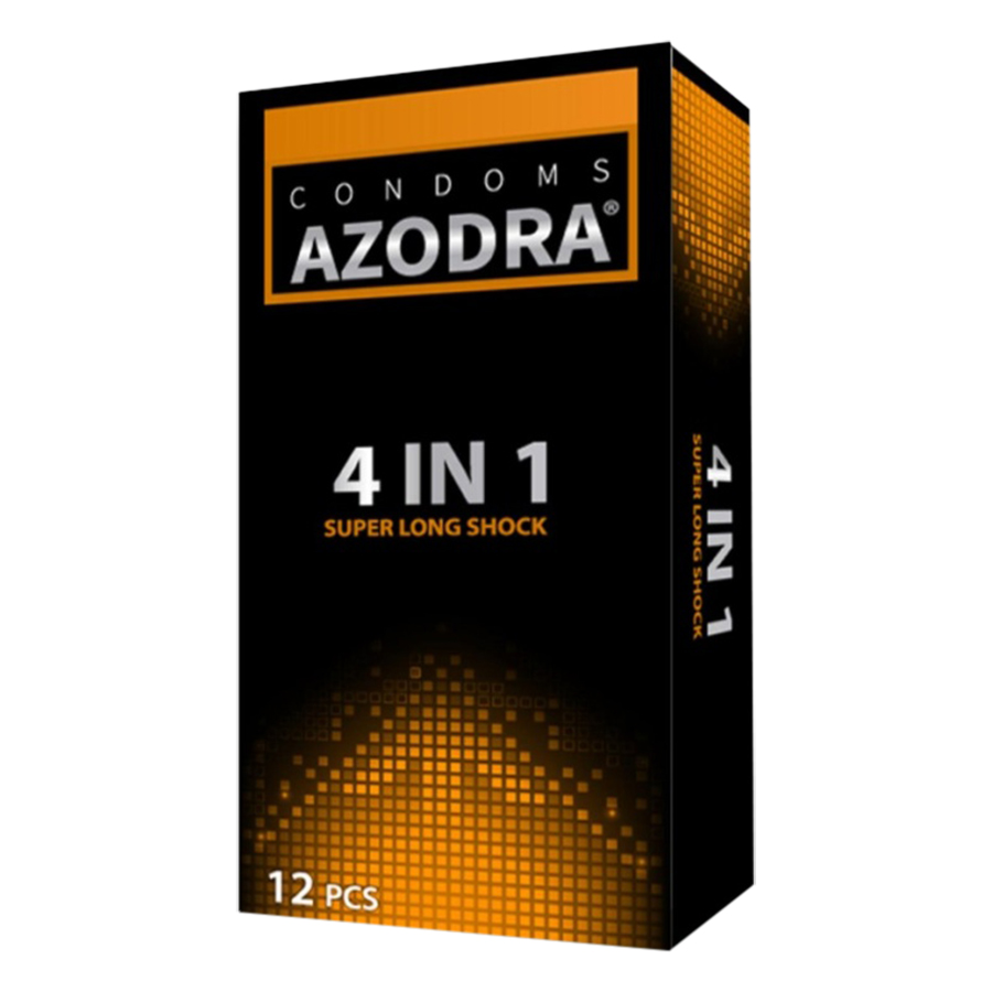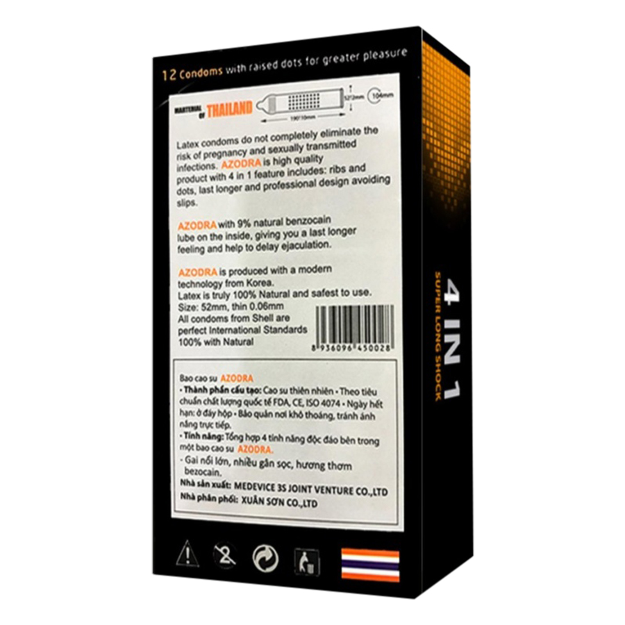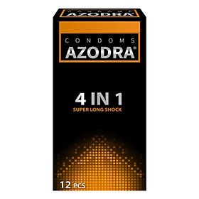 Bao Cao Su 4 in 1 Gân, Gai, Mỏng, Kéo Dài Quan Hệ Azodra (12 Gói) - Sản phẩm tổng hợp nhiều tính năng bên trong: Gân, gai, mỏng, kéo dài thời gian quan hệ. Hỗ trợ kéo dài thời gian gấp 2 - 3 lần bình thường.
