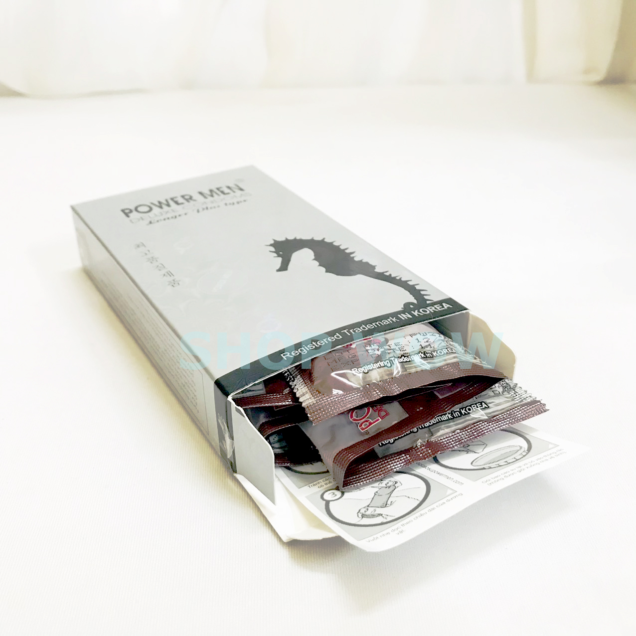 - Được làm từ mủ cao su tự nhiên, mềm mịn đàn hồi tốt, không gây kích ứng da. Hướng dẫn sử dụng Bao cao su cá ngựa bạc Power Men Longer Plus