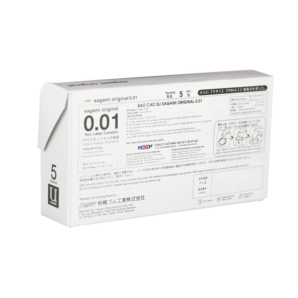 Bao cao su Sagami 0.01 siêu mỏng bằng 1/3 sợi tóc, siêu chân thật (5 bao/hộp) | Lalendi Store