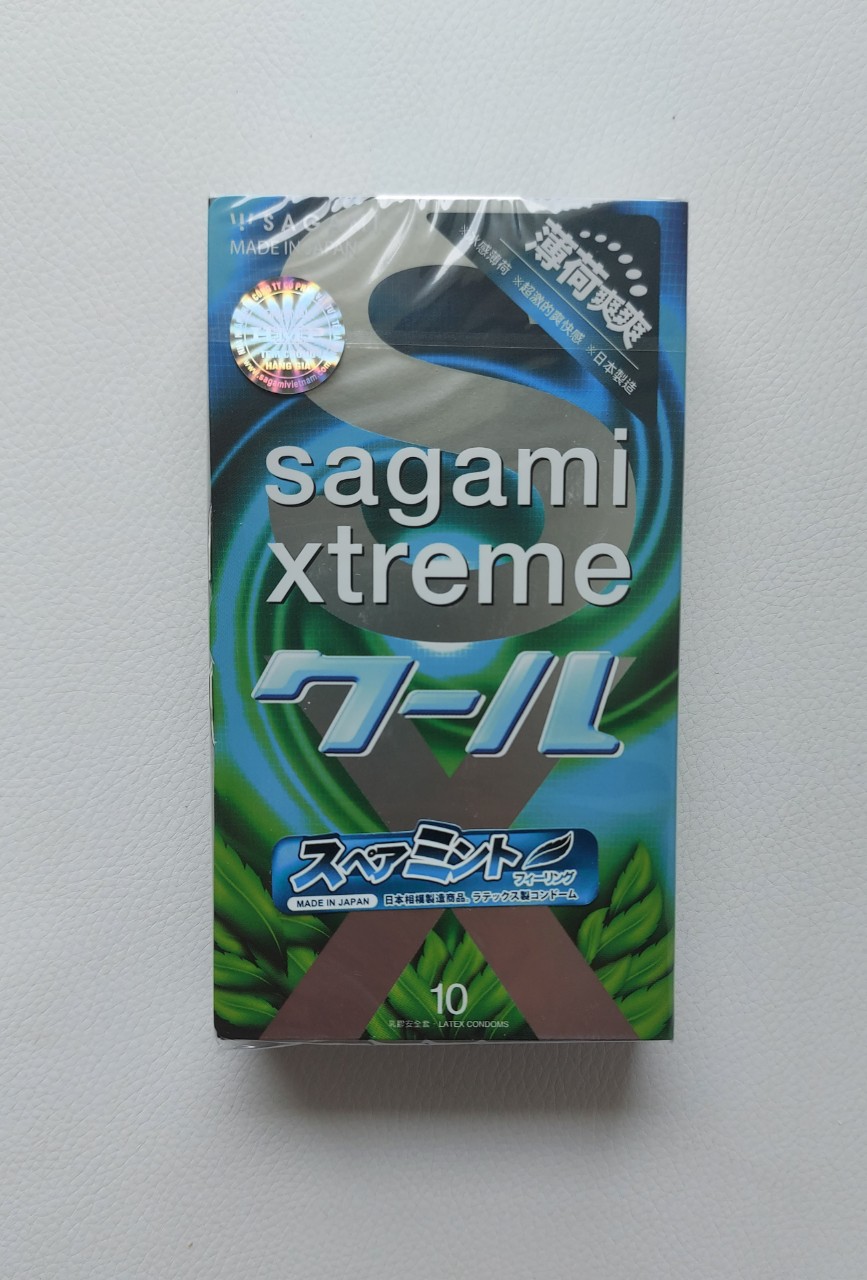Bao cao su Bạc hà Sagami XTreme Spearmint 0.05mm siêu mỏng kéo dài thời gian (10 bao/hộp)