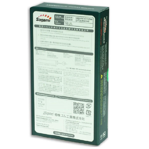 Bao cao su Bạc hà Sagami XTreme Spearmint 0.05mm siêu mỏng kéo dài thời gian (10 bao/hộp)