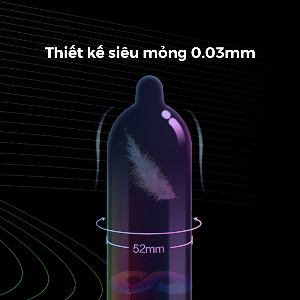 ✪ Đặc điểm: Thiết kế siêu mỏng với khả năng truyền nhiệt nhanh chóng. Cùng với đó là cảm giác mềm mại khi da chạm da, hương vani nhẹ nhàng kích thích khoái cảm. Sản phẩm giúp kéo dài thời gian hiệu quả và khả năng chống tuột rất tốt.