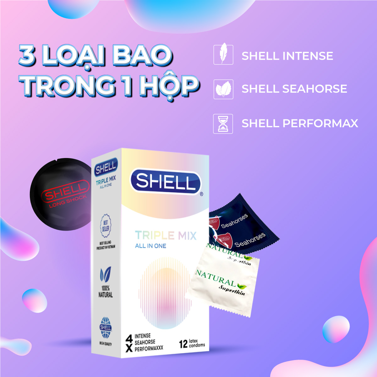 ✨Bao cao su Shell Triple Mix siêu mỏng, mát lạnh, gân gai - Hộp 12 cái | SHELL CHÍNH HÃNG