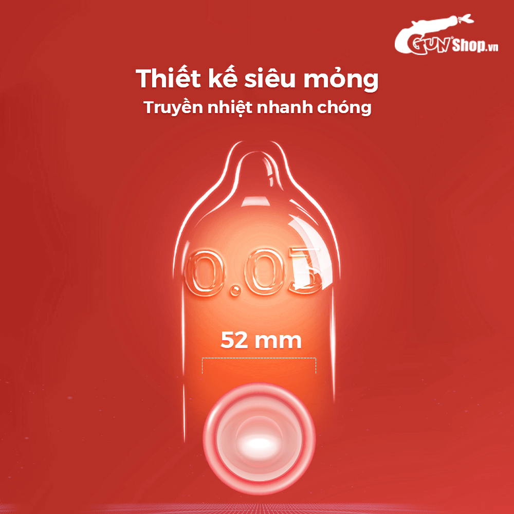 Đặc điểm: Siêu mỏng truyền nhiệt nhanh, kéo dài thời gian 3-4 lần, thiết kế chống tuột, hương hoa quả nhiệt đới tươi mát.
