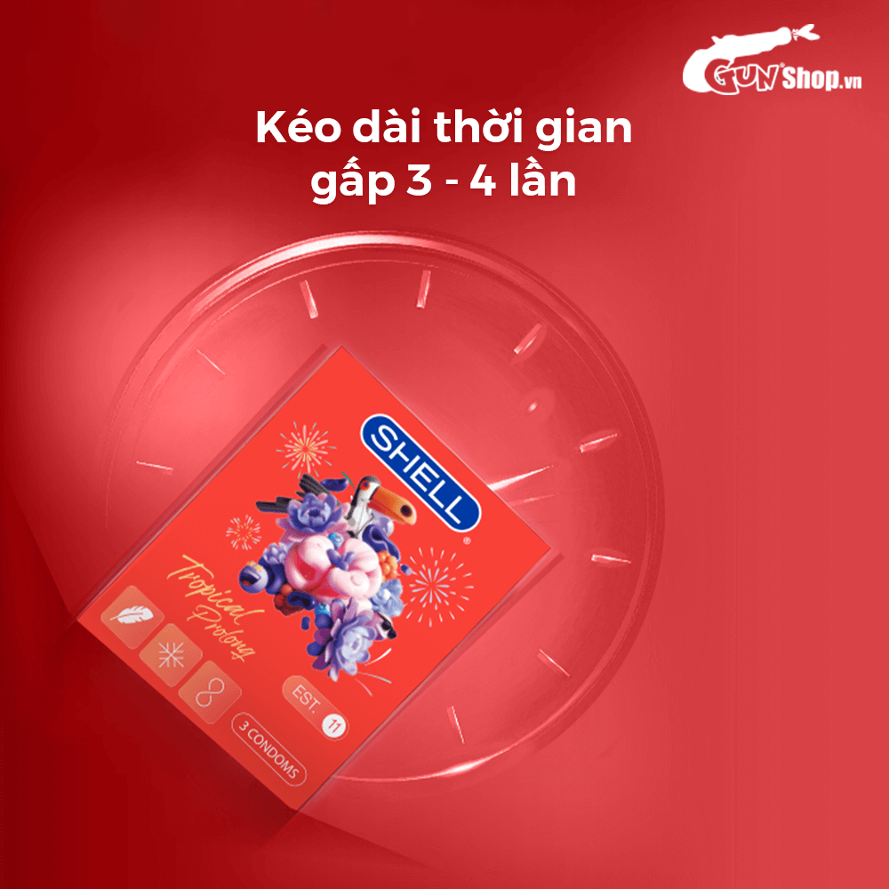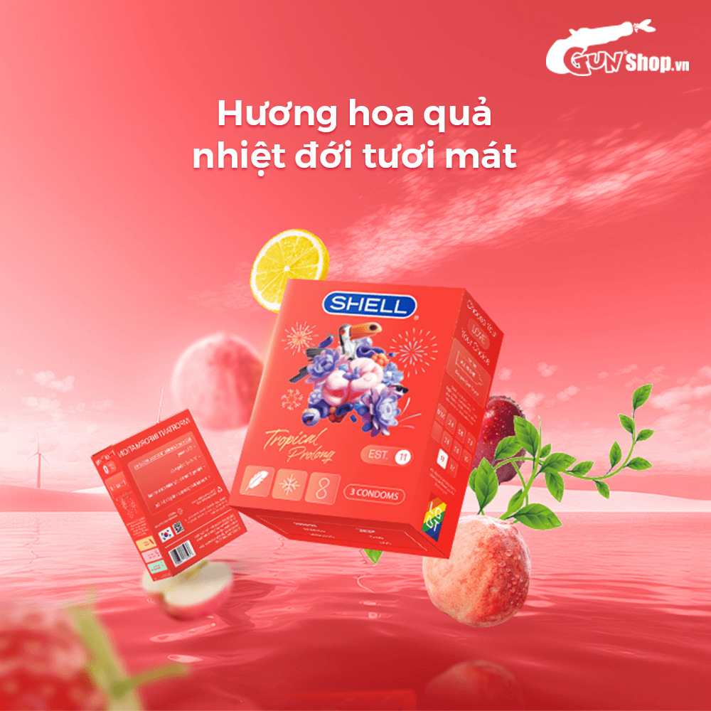 Thông tin: Bao cao su Shell Tropical Prolong với hương hoa quả nhiệt đới chắc hẳn sẽ đem lại trải nghiệm tuyệt vời cho người sử dụng khi sở hữu nhiều tính năng đặc biệt trong 1 chiếc bao. Được làm từ chất liệu Latex cao cấp, sản phẩm hoàn toàn an toàn và lành tính với thiết kế với eo thắt chống tuột và ôm sát tạo nên khoái cảm chân thật nhất, giúp bạn và nàng tận hưởng những giây phút thăng hoa trong đời sống tình dục.
