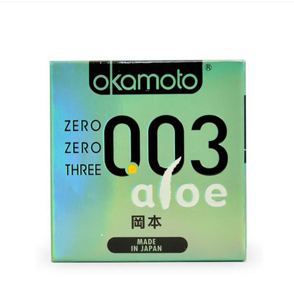 Bao Cao Su Siêu Mỏng, Tinh Chất Lô Hội Okamoto 0.03 Aloe Hộp 3 Chiếc