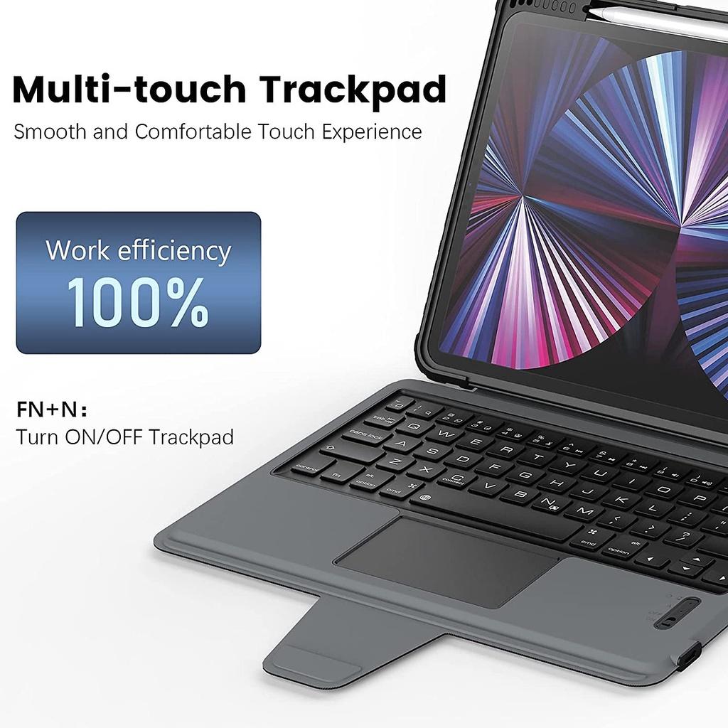 Bumper Combo Keyboard Case là hộp đựng bàn phím đa chức năng dành riêng cho iPad Pro, có giá đỡ có thể điều chỉnh, bàn phím có thể tháo rời và bàn di chuột giúp thuận tiện khi nhập, xem, đọc và phác thảo. Đồng thời cho phép bạn tận hưởng trải nghiệm hoạt động linh hoạt. Vỏ chống rơi cấp quân sự được sử dụng bao bọc chặt chẽ xung quanh các cạnh của iPad, cung cấp khả năng bảo vệ toàn bộ xung quanh. Thiết kế nắp trượt máy ảnh đã được cấp bằng sáng chế giúp bảo vệ máy ảnh của iPad khỏi mài mòn và trầy xước một cách hiệu quả. Chất liệu vải PU ngắn gọn và tinh tế hòa quyện với tính thẩm mỹ của iPad, một sự tích hợp hoàn hảo của nghệ thuật và công nghệ.