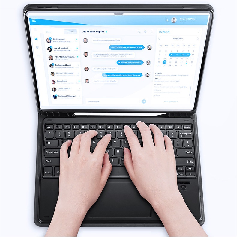 Bao da kèm bàn phím chính hãng Dux Ducis có bàn di chuột TrackPad với chân đế có thể điều chỉnh, bàn phím có thể tháo rời và bàn di chuột thông minh để đánh máy,