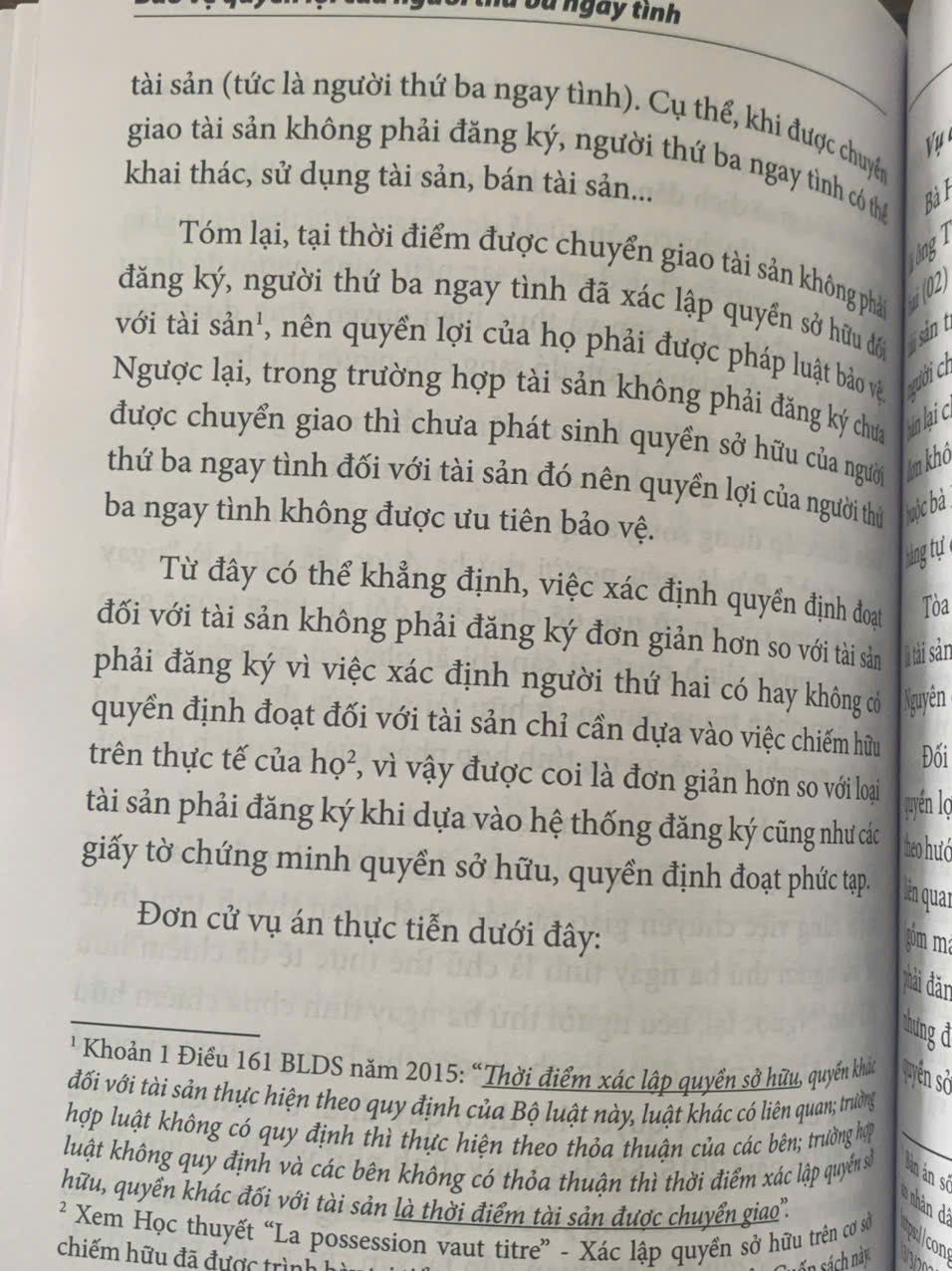 Do đó, việc thể một số trường hợp còn chưa thống nhất. Do đó, việc tiếp tục nghiên cứu lý luận và thực tiễn của các khía cạnh pháp lý về bảo vệ quyền lợi của người thứ ba ngay tình là hết sức cần thiết, không chỉ cho người nghiên cứu, người học luật mà cả những người làm thực tiễn, như Thẩm phán, Luật sư, Công tố viên, Điều tra viên... và những người tham gia xây dựng chính sách, pháp luật.