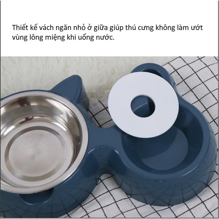 ✨Bát ăn đôi hình tai mèo lõi inox kèm bình nước tự động cho chó mèo
