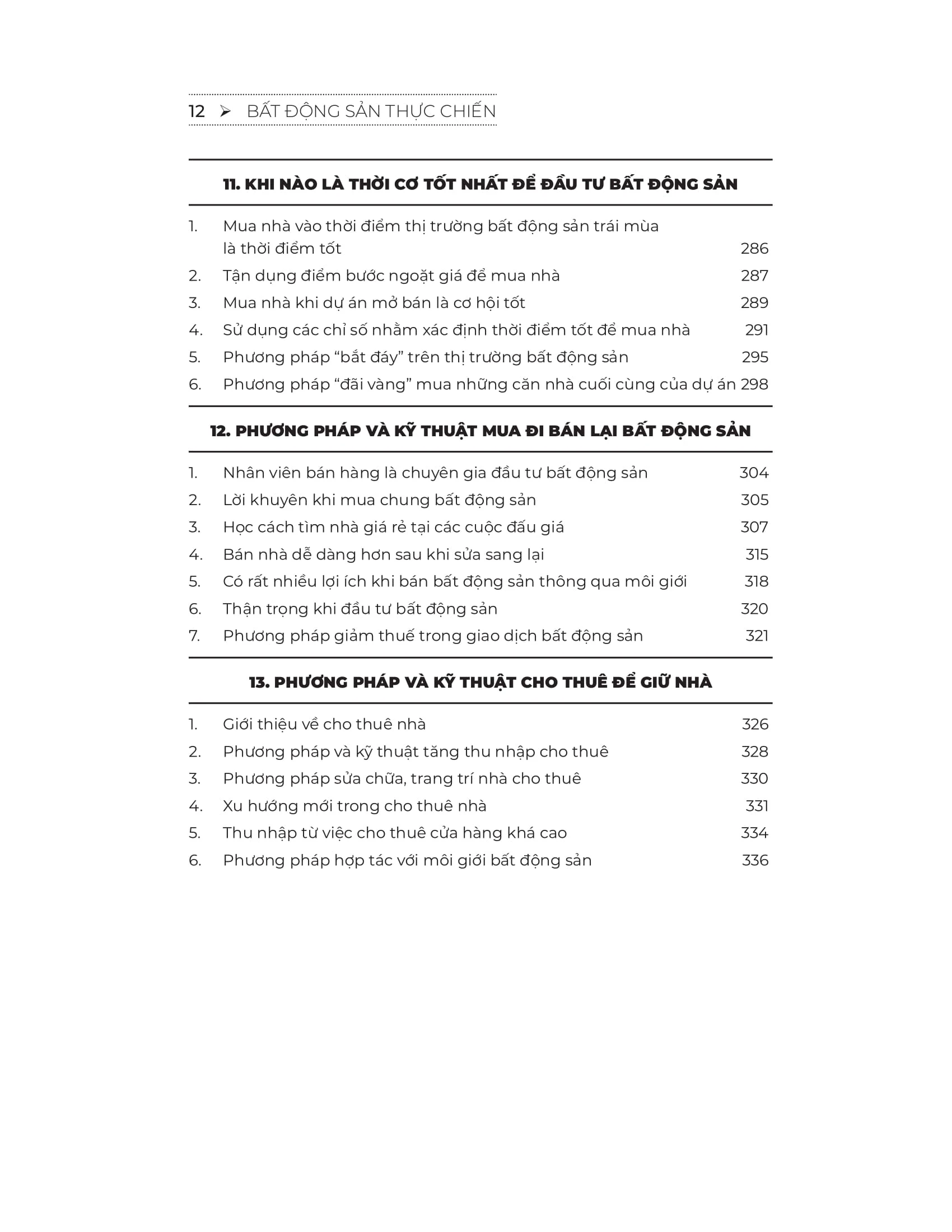- Cuốn sách trình bày một cách chi tiết các loại hình đầu tư bất động sản hiện nay, mỗi loại hình đều chỉ rõ ưu, nhược điểm, các phương pháp đầu tư, các cạm bẫy cần tránh cho nhà đầu tư mới gia nhập thị trường.
