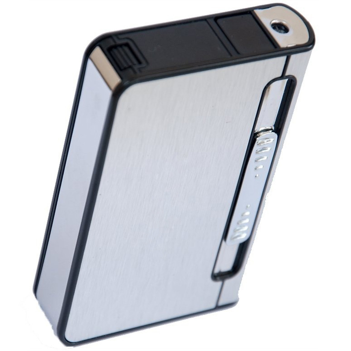 Hộp đựng thuốc l.á 20 điếu vỏ kim loại tích hợp bật lửa điện để mồi châm.