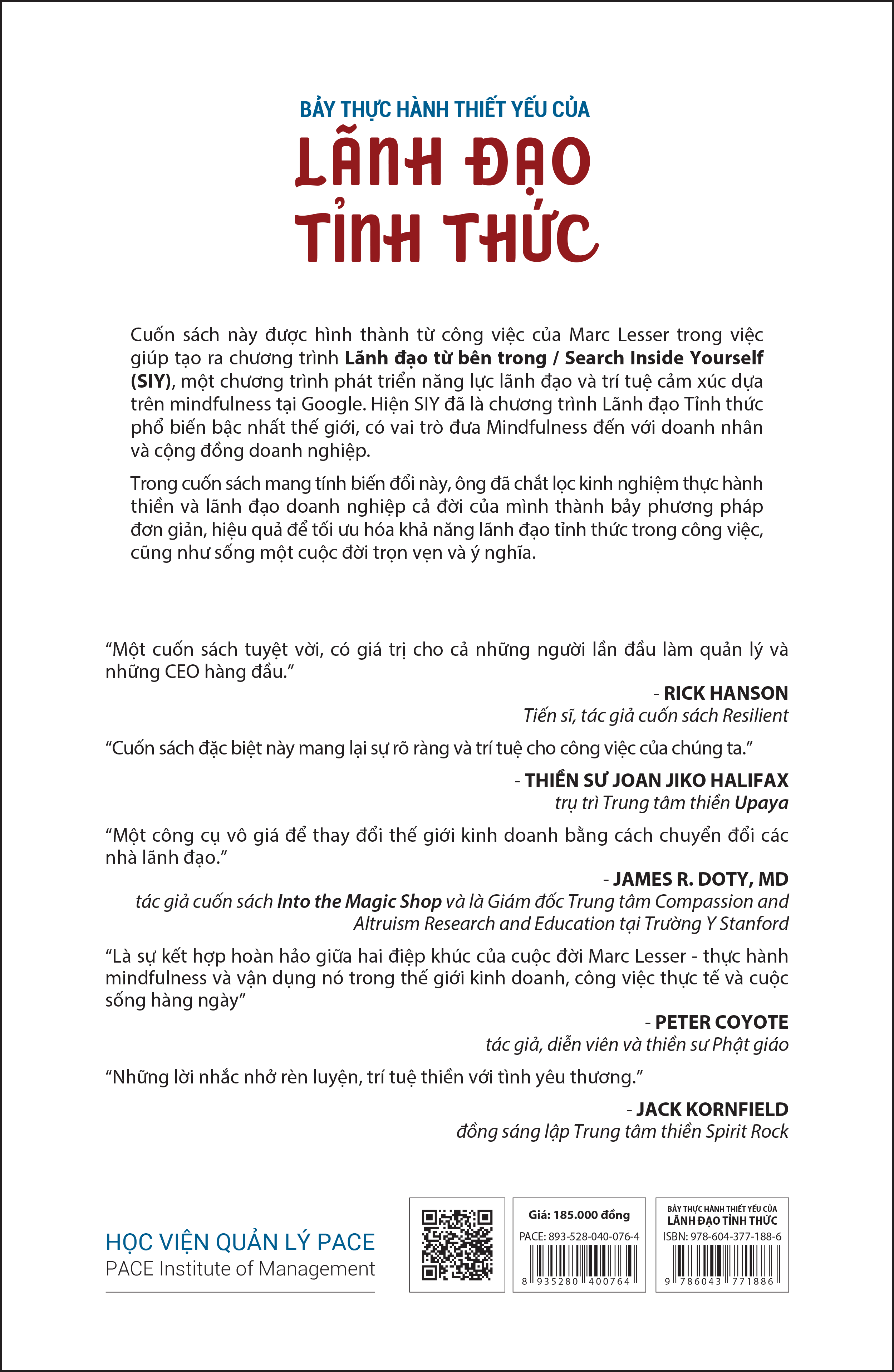 BẢY THỰC HÀNH THIẾT YẾU CỦA LÃNH ĐẠO TỈNH THỨC (Seven Practices of a Mindful Leader) - (bìa mềm) - Giá bìa: 185.000 đ Tác giả: Marc Lesser Dịch giả: Hoàng Trọng Hải Nhà xuất bản: NXB TỔNG HỢP TP. HCM Nhà phát hành: PACE Books