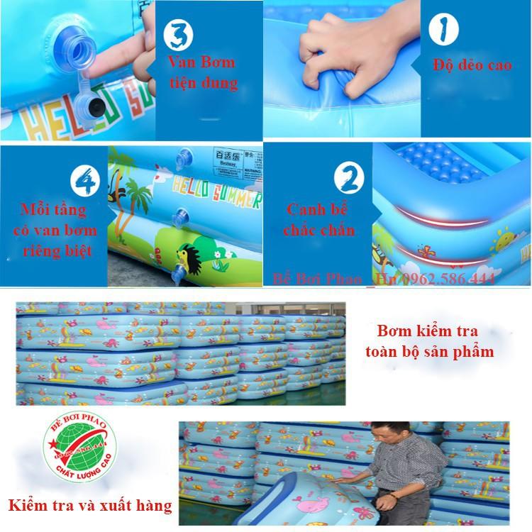 Hồ bơi thiết kế lớn có thể cho 3 bé cùng bơi Chất liệu pvc an toàn Đáy hồ bơm hơi ngồi êm ái Hồ cao 3 tầng