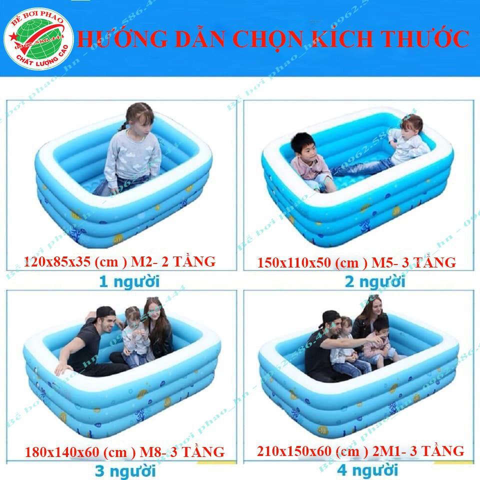Hồ bơi Phao tại nhà cho bé là hồ bơi 3 tầng Có 3 kích thước cho bạn lựa chọn: 130 x 95 x 50 (cm ) 210 x 150 x 60 (cm) 305 x