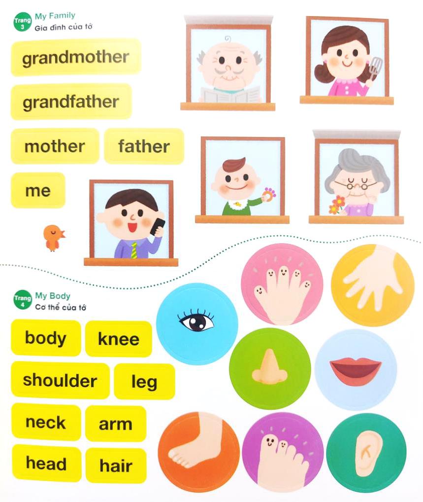 Với các hình bóc dán lớn, sinh động và màu sắc rực rỡ, cùng với các bài tập đa dạng, thú vị, bộ sách sẽ thu hút các bé và giúp bé phát triển trí thông minh và vốn từ vựng thông qua việc học song ngữ tiếng Anh và tiếng Việt. Ngoài ra, các bé sẽ vô cùng thích thú khi được vừa học vừa chơi cùng các miếng sticker nhiều chủ đề.