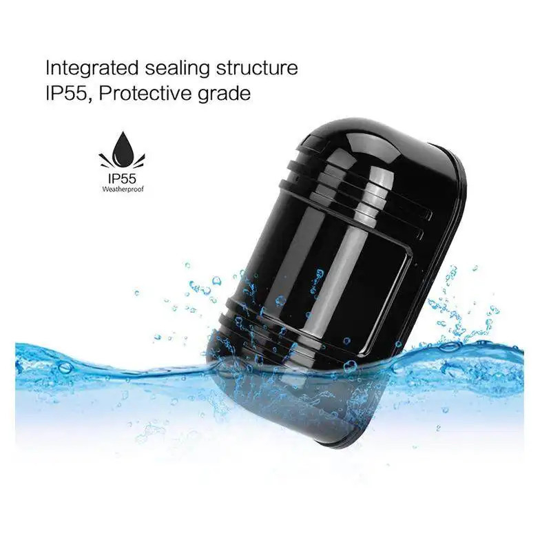 - Hàng rào hồng ngoại tia kép tự điều chỉnh ngoài trời, chống chịu được các điều kiện thời tiết khắc nghiệt như mưa gió, sương mù, tuyết rơi …