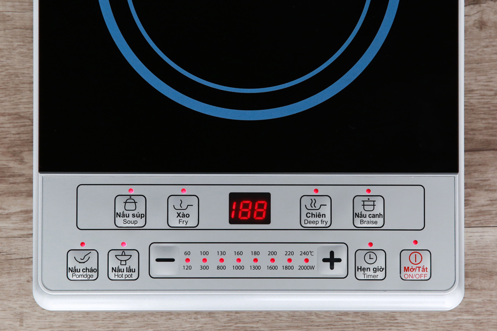 Mặt kính cường lực chịu nhiệt cao, chống xước Màn hình LED hiển thị công suất và nhiệt độ Điều khiển cảm ứng 10 mức gia nhiệt Hẹn giờ 0 -24 giờ Chức năng tự
