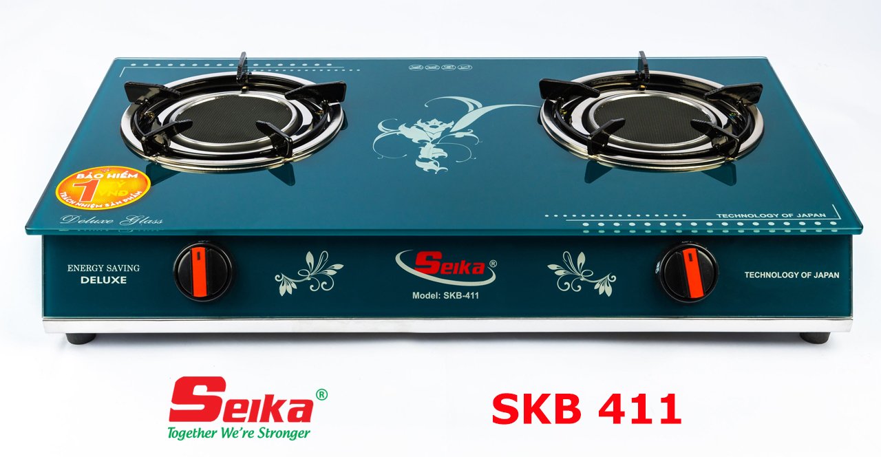 ✨Bếp Gas Đôi Mặt Kính Sen Hồng Ngoại Seika SKB411 - Hàng Chính Hãng