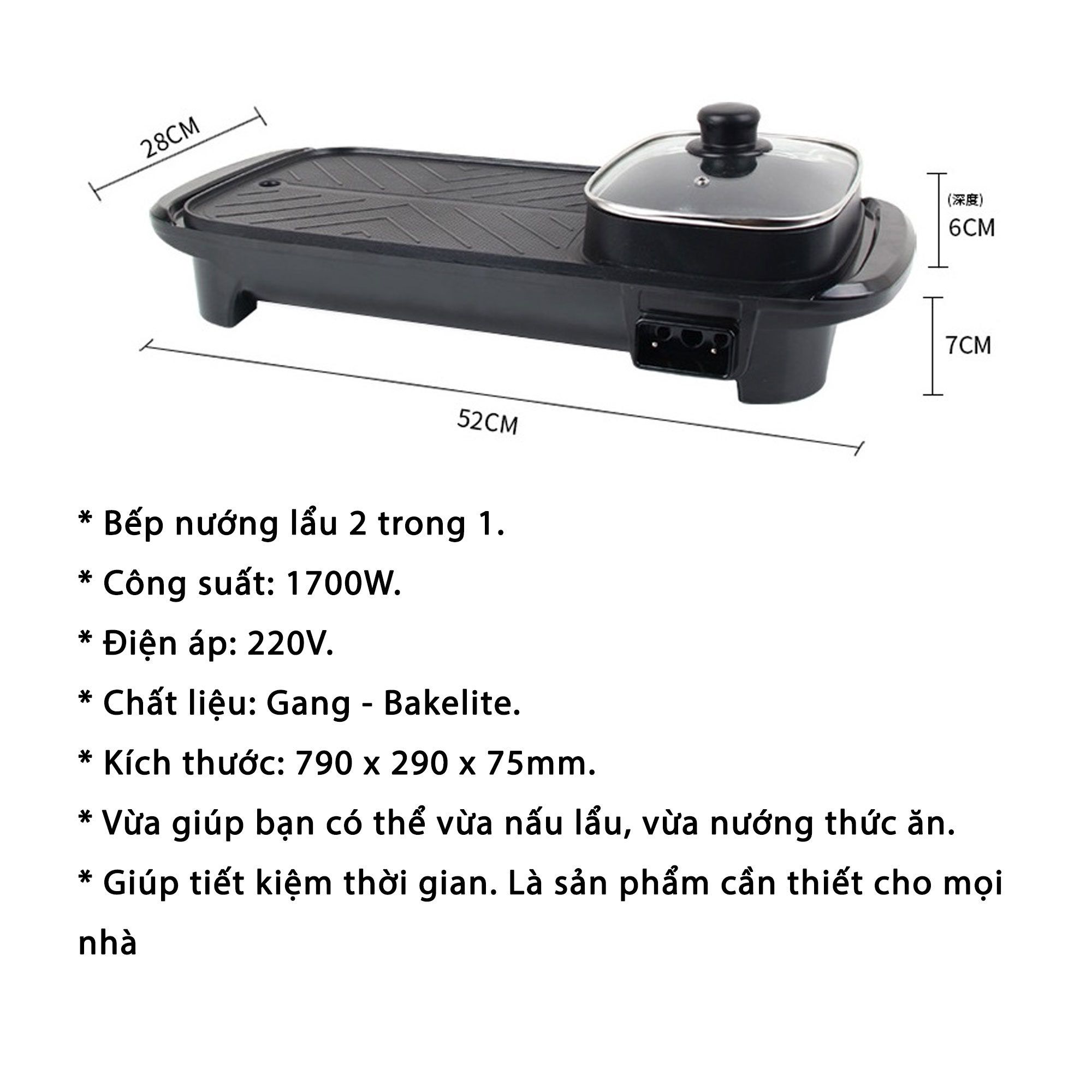Bếp lẩu nướng 2in1 đa năng cao cấp dài, nồi lẩu kiêm nướng công suất 1300w, bề mặt tráng men chống dính Là một thiết bị nhà bếp sử dụng điện năng để chuyển hóa