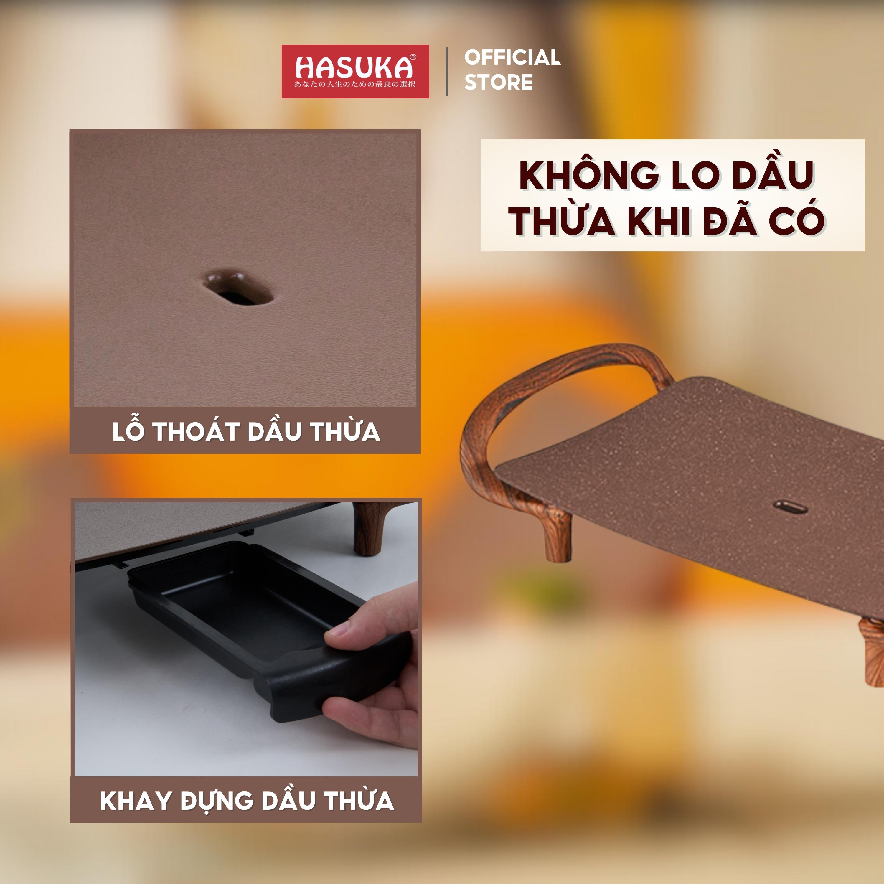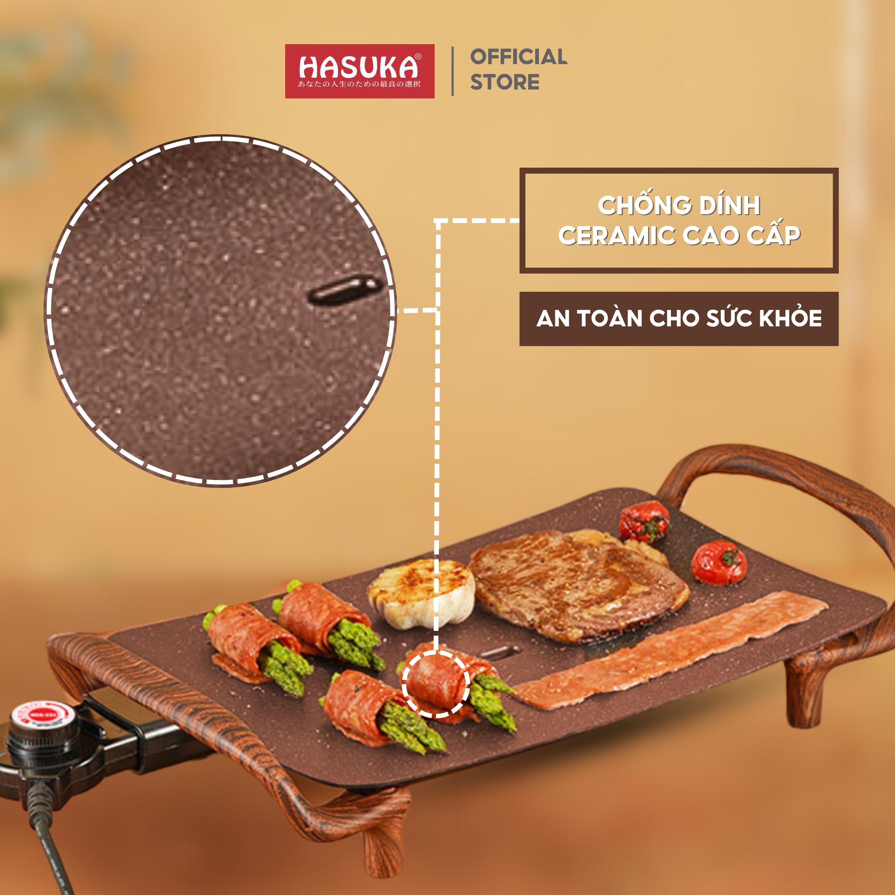 Bếp lẩu nướng đa năng HASUKA HSK-366LN 2in1 nướng lẩu đồng thời, lòng nồi chống dính Ceramic an toàn