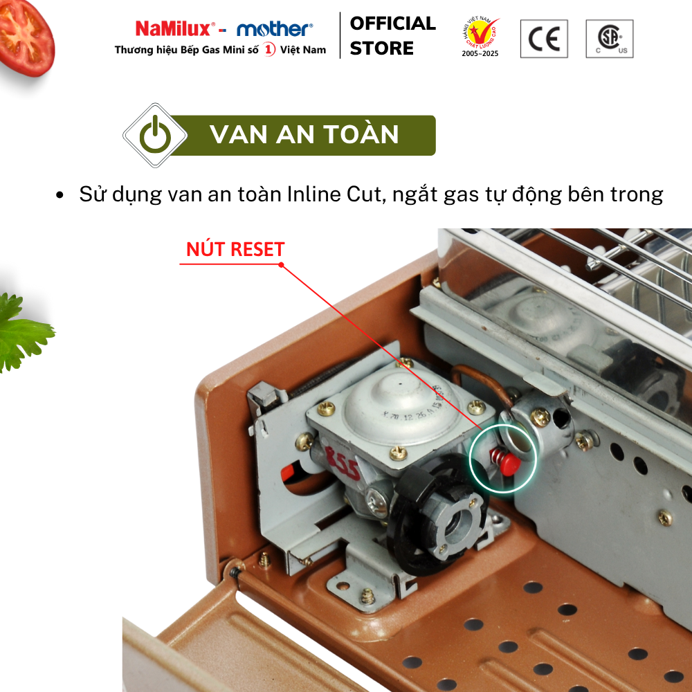 Van Inline Cut với hệ thống ngắt gas bên trong, hoàn toàn chính xác. Trong quá trình sử dụng, nếu áp lực gas tăng cao vượt ngưỡng cho phép, cụm van sẽ tự động ngắt gas, đảm bảo an toàn trong quá trình sử dụng.