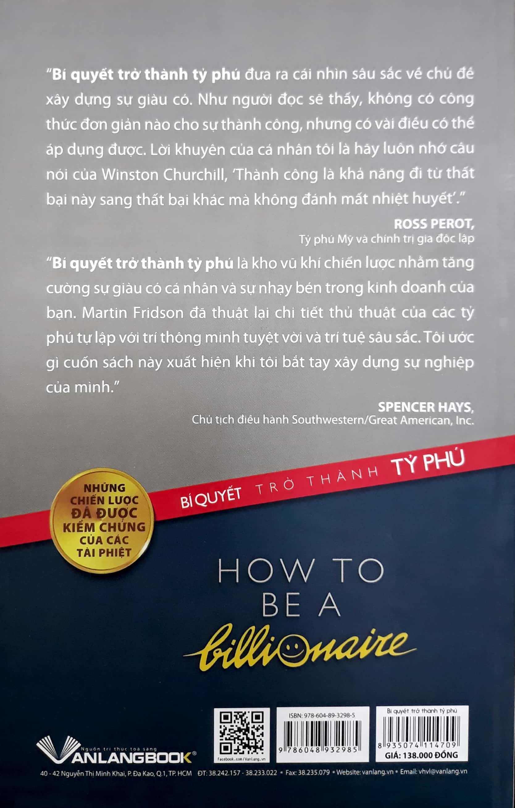 Bí Quyết Trở Thành Tỷ Phú – Vanlangbooks - Giới thiệu “Bí quyết trở thành tỷ phú đưa ra cái nhìn sâu sắc về chủ đề xây dựng sự giàu có. Như người đọc sẽ