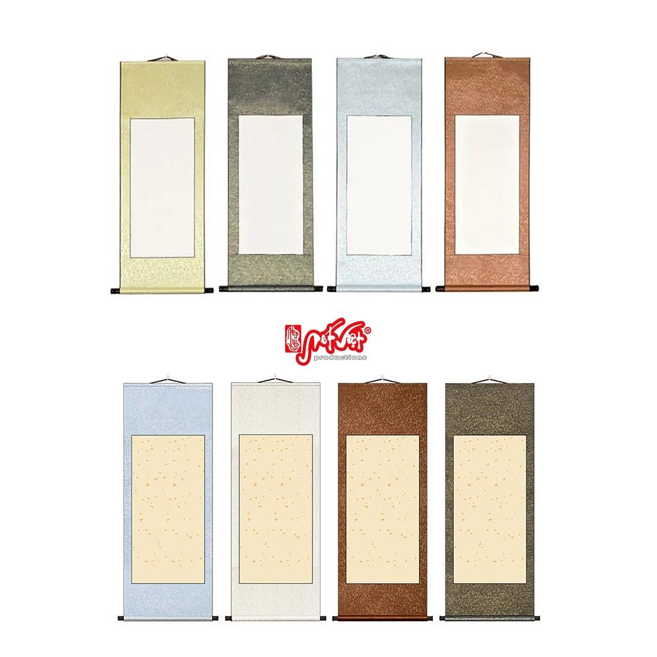 Biểu lụa bồi giấy xuyến có trục treo, nút gỗ chuyên dùng viết thư pháp, vẽ tranh thuỷ mặc, màu nước nhiều màu sắc & kích cỡ Sản phẩm này là tài sản cá nhân