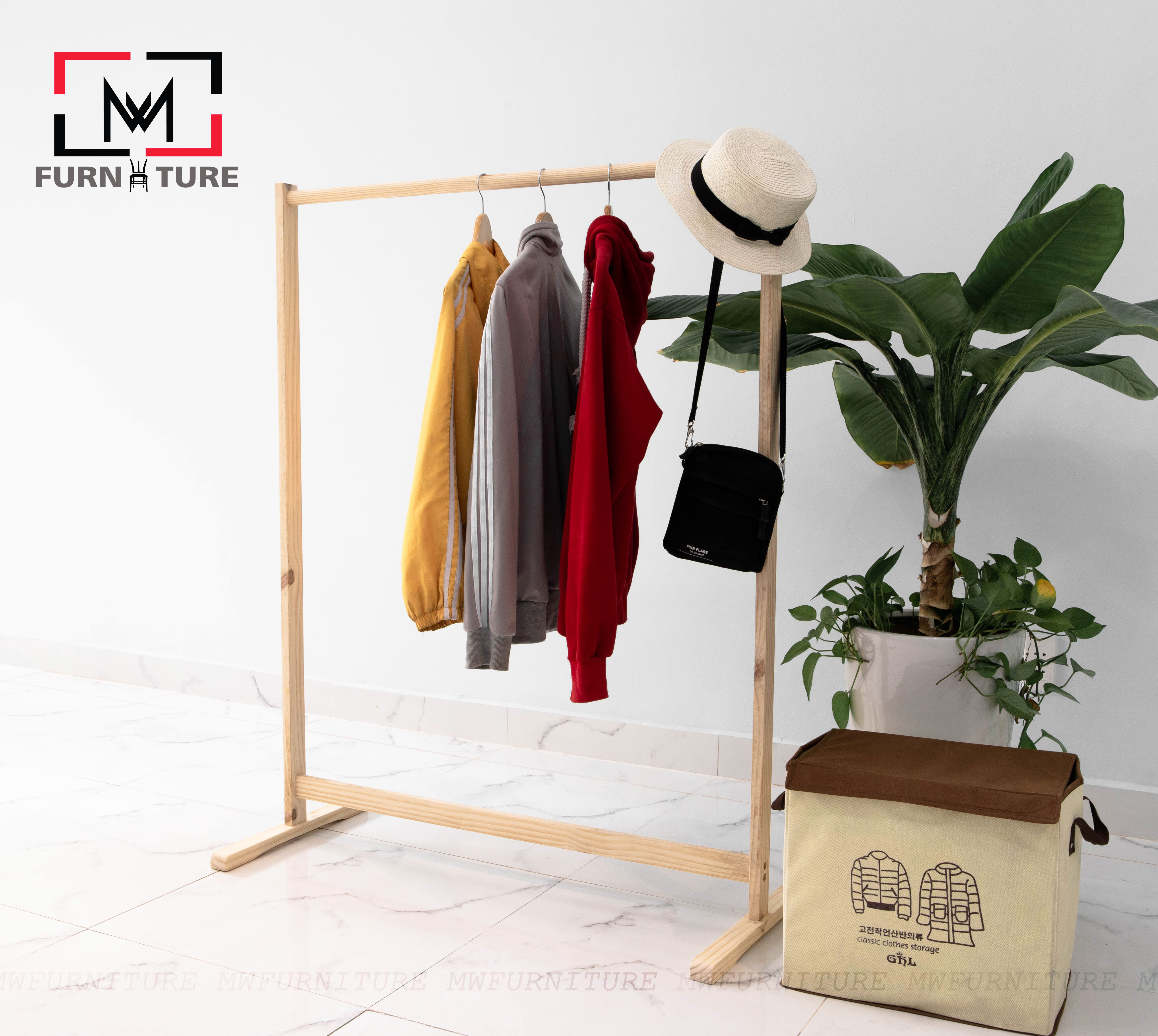 GIÁ TREO QUẦN ÁO THANH ĐƠN SIZE 1 MÉT - SINGLE HANGER Kích thước: 100 x 44 x 125 cm ( Dài x Rộng x Cao) Chất liệu: Gỗ thông nhập khẩu NewZealand Xuất xứ: